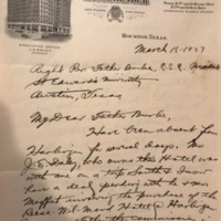 Correspondence from University President O'Donnell to Dr. O'Donohoe, in which he indicates the struggle to "increase... enrollment" and references his tours around Texas to recruit students. The letter suggests a positive relationship between the…