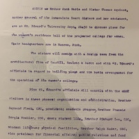 This is a clipping from the Alumni Newsletter from St. Edward's University describe the first women to register for classes at St. Edward's University and Maryhill College. It explains the surprise from the male staff and students to have women…