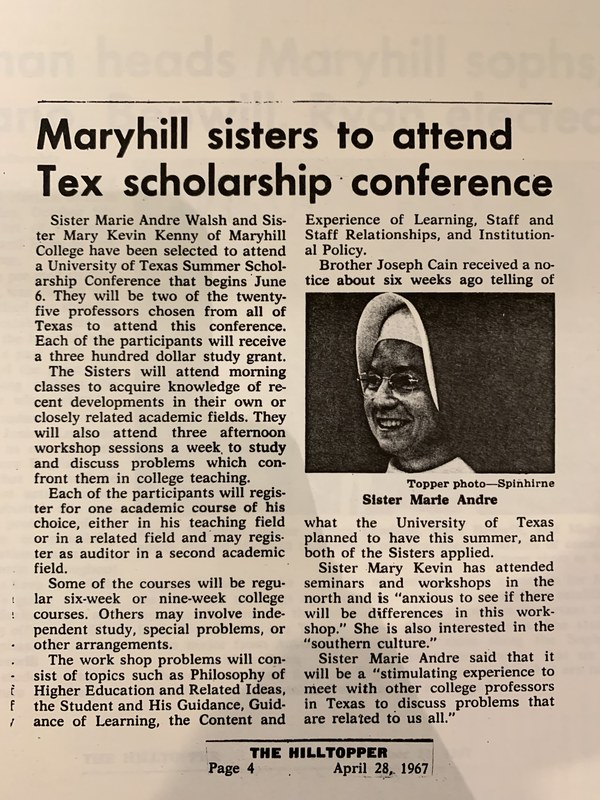 A newspaper article detailing an upcoming conference for a select few people from across the state of Texas. The sisters selected were two out of twenty-five total to be picked. Sister Mary Kevin has some thoughts on her expectations for the conference.